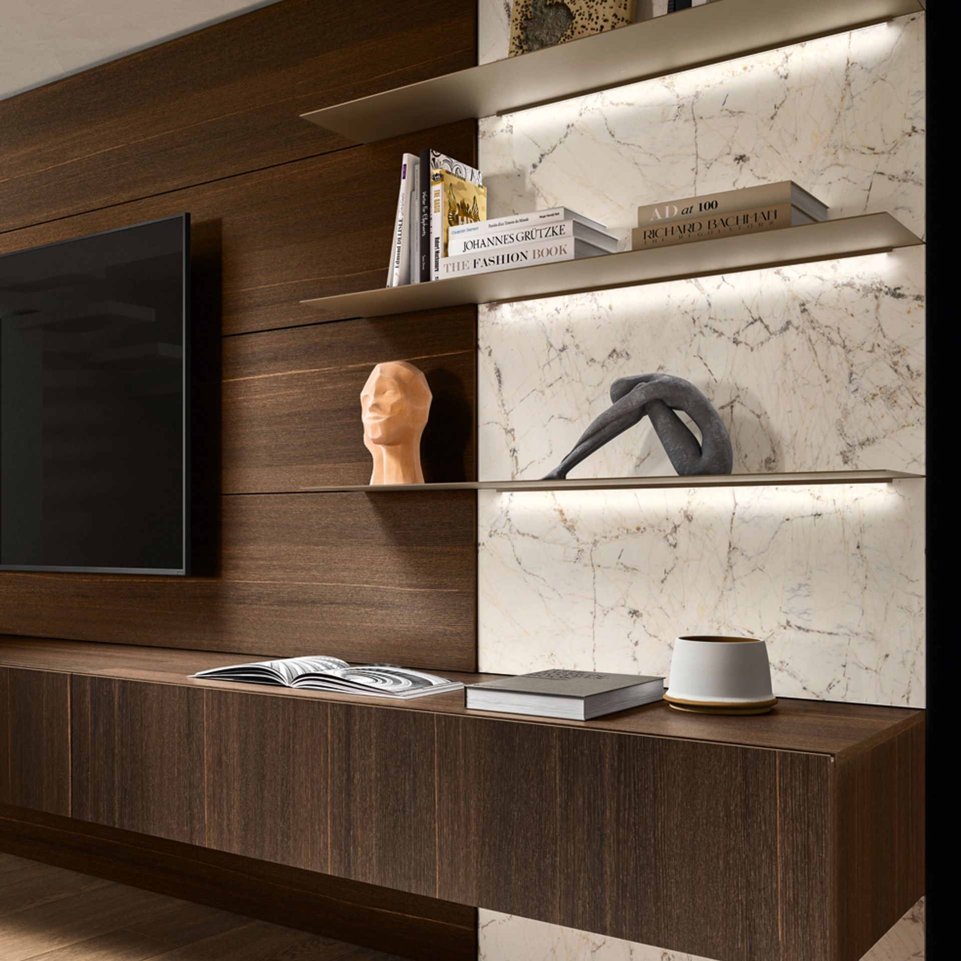 Kombiniert mit LEDs, Regalen oder TV-Elementen wird sie zum funktionalen Highlight.