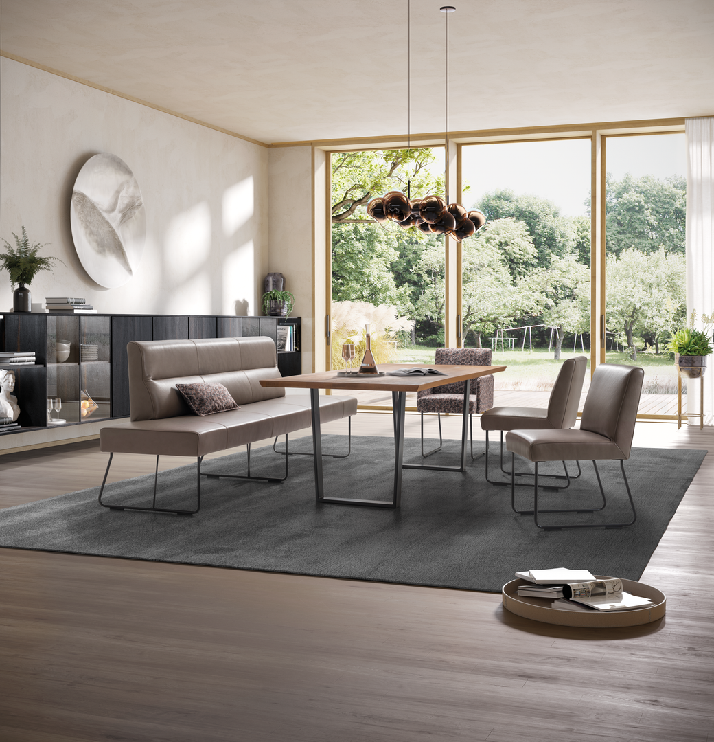 Eine kleine Auszeit vom Alltag, zu Mittag oder auf einen Kaffee zwischendurch, wird gerne einmal ausgedehnt und dient als Kurzurlaub, der in die tägliche Routine integriert wird. Dementsprechend muss auch die Sitzqualität des modernen Wohnens zur Mini-Wellness-Oase werden. Hier bieten sich gemütliche Armlehner oder Bankteile an mit Kaltschaum-Auflägen - ähnlich wie bei Polstergarnituren. Sie bieten eine hervorragende Qualität mit Komfort-Garantie.