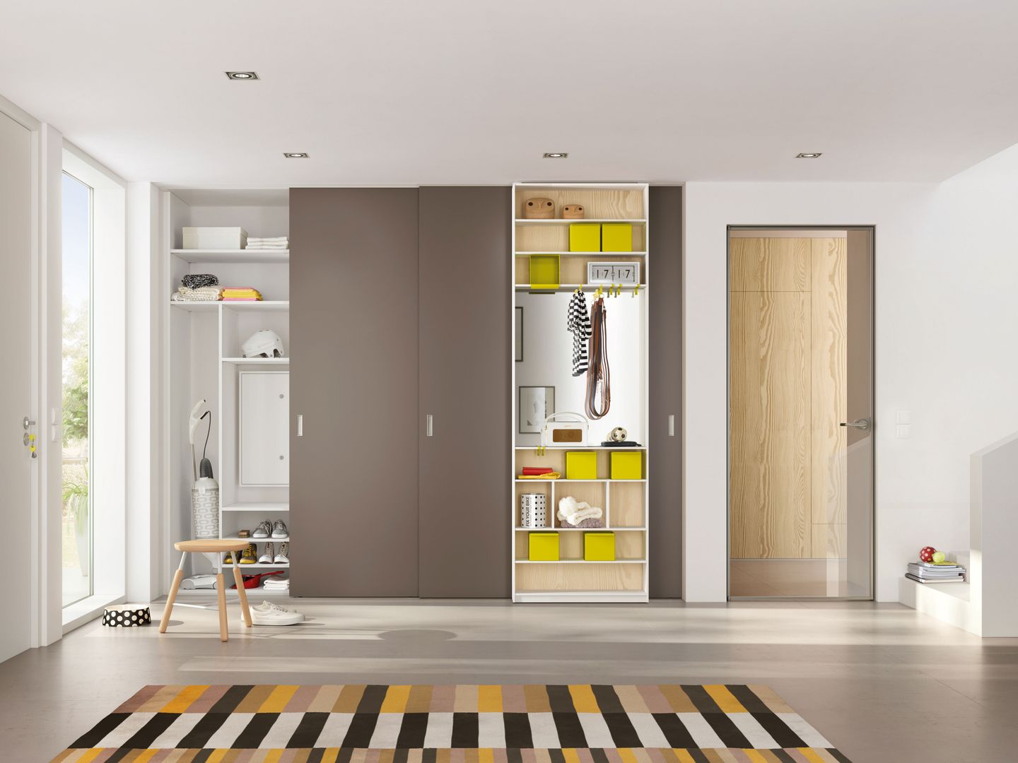 Als Visitenkarten für die eigenen 4 Wände vermittelt der Garderobenbereich den Designeinstieg in Ihre Wohnung. Außerdem bietet er Stauraum für alles, was man beim Kommen und Gehen so braucht. Von den Gummistiefeln bis zur Hutablage. Die Handtaschen, Mäntel, Mützen und viele weitere Accessoires nicht zu vergessen.